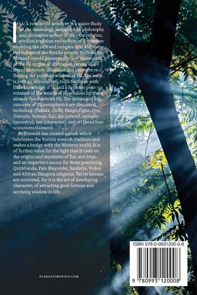 Ifá: A Forest of Mystery by Nicholaj de Mattos Frisvold is a major study on the cosmology, metaphysics, philosophy and divination system of Ifá, written by a tradition holder and member of the council of elders, known as the Ogboni society, of Abeokuta, Nigeria. Ifá - an alternative name for its prophet Òrúnmìlà - is a religion, a wisdom tradition and a system of divination encoding the rich and complex oral and material culture of the Yoruba people. The Yoruba culture is grounded in memory, an ancestral repository of wisdom, that generates good counsel, advises appropriate ebo (sacrifice) and opens the way to develop a good character on our journey through life and in our interactions with the visible and invisible worlds. The work is a presentation of the first sixteen odù of the Ifá corpus of divination verses explained in stories, allegories and proverbs reflecting the practical wisdom of Ifá. The work is both a presentation of Ifá for those with little knowledge of it, and a dynamic presentation of the wealth of its wisdom for those already familiar with Ifá. The deities and key concepts of Ifá metaphysics are discussed, including: Obàtálá, Ònilé, Sàngó, Ògún, Oya, Òsányìn, Yemoja, Èsù, àse (power), egúngún (ancestry), ìwà (character), and orí (head/consciousness/daimon). Notably, Dr Frisvold has created a work which celebrates the Yoruba wisdom tradition and makes a bridge with the Western world. It is of value for the light that it casts on the origins and mysteries of Èsù and òrìsà, and an important source for those practicing Quimbanda, Palo, Santeria, Vodou and the African Diaspora religions. Yet its lessons are universal, for it is the art of developing character, of attracting good fortune and accruing wisdom in life. As Nicholaj writes: '...Ifá is a philosophy, a theogony, theology and cosmology rooted in a particular metaphysic that concerns itself with the real and the ideal, the world and its beginning. It is rooted in the constitution of man and the purpose of life and the nature of fate. Ifá is a philosophy of character. The philosophy of Ifá lies at the root of any religious cult or organization involving the veneration of òrìsà. [...] Through stories and legends, divinatory verses and proverbs, this philosophy will be revealed piece by piece until the landscape has been laid open before you... '