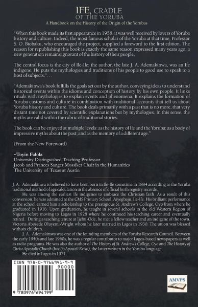 "When this book made its first appearance in 1958, it was well received by lovers of Yoruba history and culture. Indeed, the most famous scholar of the Yoruba at that time, Professor S. O. Biobaku, who encouraged the project, supplied a foreword to the first edition. The reason for reprinting this book is exactly the same reason expressed many years ago: a new generation remains ignorant of the history of their people. The central focus is the city of Ile-Ife; the author, the late J. A. Ademakinwa, was an Ife indigene. He puts the mythologies and traditions of his people to good use to speak to a host of subjects.". . . "Ademakinwa's book fulfills the goals set out by the author, conveying ideas to understand historical events within the idioms and conception of history by his own people. It links rituals with mythologies to explain events and phenomena. It explains the formation of Yoruba customs and culture in combination with traditional accounts that tell us about Yoruba history and culture. The book deals primarily with a past that is no more, that very distant time not covered by scientific explanations but by mythologies. In this sense, the myths are valid within the rubric of traditional stories. The book can be enjoyed at multiple levels: as the history of Ife and the Yoruba; as a body of impressive myths about the past; and as the memory of a different age." -Toyin Falola University Distinguished Teaching Professor Jacob and Frances Sanger Mossiker Chair in the Humanities The University of Texas at Austin (From the New Foreword) ABOUT THE AUTHOR J. A. Ademakinwa is believed to have been born in Ile-Ife sometime in 1894 according to the Yoruba traditional method of age calculation in the absence of official birth registry records. He was among the earliest Ife indigenes to embrace the Christian faith. As a result of this conversion, he was admitted to the CMS Primary School, Aiyegbaju, Ile-Ife. His brilliant performance at the school earned him a scholarship to the prestigious St. Andrew's College, Oyo from where he graduated in 1918. Upon graduation, he taught in several schools in the Old Western Region of Nigeria before moving to Lagos in 1928 where he continued his teaching career and eventually retired. During a teaching tenure at Ijebu-Ode, he met a fellow teacher and an indigene of the town, Victoria Abosede Oluyemi-Wright whom he later married in Lagos in 1930. The union was blessed with six children. J. A. Ademakinwa was one of the founding members of the Yoruba Research Council. Between the early 1940s and late 1960s, he was a regular contributor to major Lagos-based newspapers as well as Radio programs. He was also the author of The History of St. Andrew's College, Oyo and The History of Christ Apostolic Church (both written in Yoruba language).