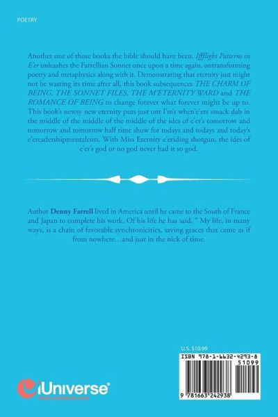 Another one of those books the bible should have been. Iffflight Patterns in E'er unleashes the Farrellian Sonnet once upon a time again, ontransforming poetry and metaphysics along with it. Demonstrating that eternity just might not be wasting its time after all, this book subsequences THE CHARM OF BEING, THE SONNET FILES, THE M'ETERNITY WARD and THE ROMANCE OF BEING to change forever what forever might be up to. This book's newsy new eternity puts just ont I'm's when'e'ers smack dab in the middle of the middle of the middle of the ides of e'er's tomorrow and tomorrow and tomorrow half time show for todays and todays and today's e'ereadershipmentalents. With Miss Eternity e'eriding shotgun, the ides of e'er's god or no god never had it so god.