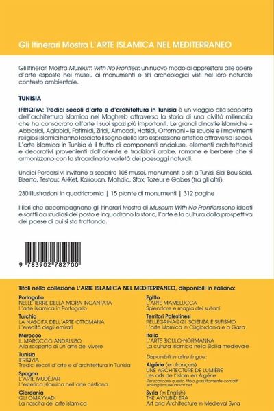 Ifriqiya: Tredici secoli d’arte e d’architettura in Tunisia è un viaggio alla scoperta dell’architettura islamica nel Maghreb attraverso la storia di una civiltà millenaria che ha consacrato all’arte i suoi spazi più importanti. Le grandi dinastie islamiche – Abbasidi, Aglabidi, Fatimidi, Ziridi, Almoadi, Hafsidi, Ottomani – le scuole e i movimenti religiosi islamici hanno lasciato il segno della loro espressione artistica attraverso i secoli. L’arte islamica in Tunisia è il frutto di componenti andaluse, elementi architettonici e decorativi provenienti dall’oriente e tradizioni arabe, romane e berbere che si armonizzano con la straordinaria varietà dei paesaggi naturali. Unidici Percorsi vi invitano a scoprire 108 musei, monumenti e siti a Tunisi, Sidi Bou Said, Biserta, Testour, Al-Kef, Kairouan, Mahdia, Sfax, Tozeur e Gabes (fra gli altri).