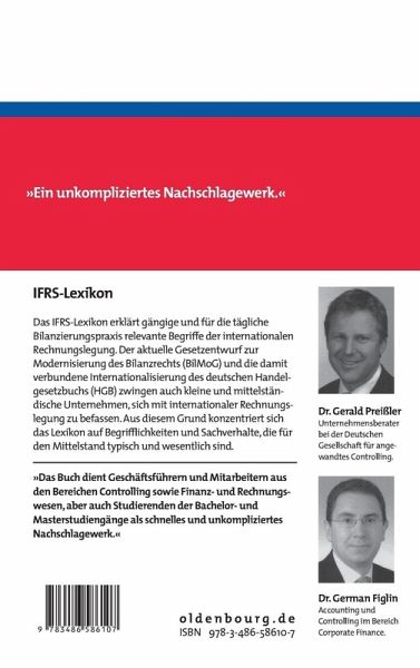 Das IFRS Lexikon erklärt gängige und für die tägliche Bilanzierungspraxis relevante Begriffe der internationalen Rechnungslegung. Der aktuelle Gesetzentwurf zur Modernisierung des Bilanzrechts (BilMoG) und die damit verbundene Internationalisierung des deutschen Handelgesetzbuchs (HGB) zwingen auch kleine und mittelständische Unternehmen, sich mit internationaler Rechnungslegung zu befassen. Aus diesem Grund konzentriert sich das Lexikon auf Begrifflichkeiten und Sachverhalte, die für den Mittelstand typisch und wesentlich sind. Es dient Geschäftsführern und Mitarbeitern aus den Bereichen Controlling sowie Finanz- und Rechnungswesen, aber auch Studierenden der Bachelor- und Masterstudiengänge als schnelles und unkompliziertes Nachschlagewerk.