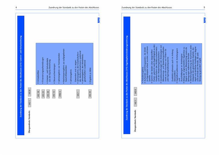 IFRS auf einen Blick. Die IASB-Rechnungslegung ist komplex und vielschichtig. Baumdiagramme helfen, die Struktur der IASB-Normen und den typischen Aufbau eines Standards zu verstehen. Welche Standards sind für die Jahresabschlussposten relevant? In dem Überblicksband sind alle Zusammenhänge und die ab 2005 anzuwendenden IFRS dargestellt. Berücksichtigt sind auch die neu verlautbarten IFRS 1 bis 5 ebenso wie die Änderungen der bisherigen IAS durch das Improvements Project und die Amendments zu IAS 32 sowie 39. Für die schnelle Orientierung in der IASB-Rechnungslegung.