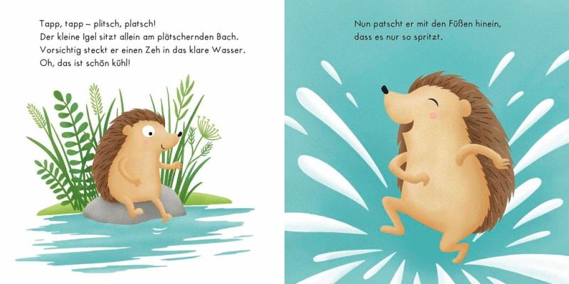 Der kleine Igel liebt es im Teich zu plantschen. Mit anderen gemeinsam wäre es viel lustiger, aber die Eichhörnchen behaupten, dass Igelchens Stacheln piksen und die Waldmausbande findet ihn zu groß. Er passt ja gar nicht in ihr Mauseloch. Da hat Igelchen eine Idee. Er zeigt den anderen, was er am besten kann und was riesigen Spaß macht- nämlich durchs Laub kullern. Da wollen alle mitmachen und kichern sich dabei kugelrund!