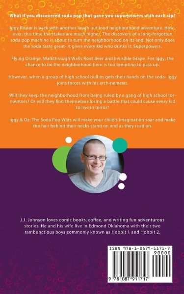 What if you discovered soda pop that gave you superpowers with each sip? Iggy Risner is back with another laugh out loud neighborhood adventure. However, this time the stakes are much higher. The discovery of a long-forgotten soda pop machine is about to turn the neighborhood on its end. Not only does the soda taste great- it gives every kid who drinks it: Superpowers. Flying Orange, Walkthrough Walls Root Beer and Invisible Grape. For Iggy, the chance to be the neighborhood hero is too tempting to pass up. However, when a group of high school bullies gets their hands on the soda- Iggy joins forces with his arch-nemesis. Will they keep the neighborhood from being ruled by a gang of high school tormentors? Or will they find themselves losing a battle that could cause every kid to live in terror? Iggy & Oz: The Soda Pop Wars will make your child's imagination soar and make the hair behind their necks stand on end as they read on. Full of twist and turns, this is perfect for fans of Diary of a Wimpy Kid and The Last Kids on Earth. Order your copy today and get in on the adventure.