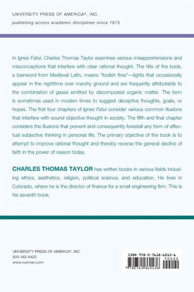 In Ignes Fatui, Taylor examines various misapprehensions and misconceptions that interfere with clear rational thought. The primary objective of this book is to attempt to improve rational thought and thereby reverse the general decline of faith in the power of reason today.