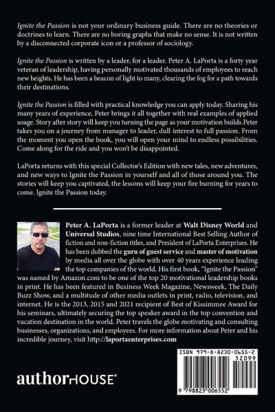 Ignite the Passion is not your ordinary business guide. There are no theories or doctrines to learn. There are no boring graphs that make no sense. It is not written by a disconnected corporate icon or a professor of sociology. Ignite the Passion is written by a leader, for a leader. Peter A. LaPorta is a forty year veteran of leadership, having personally motivated thousands of employees to reach new heights. He has been a beacon of light to many, clearing the fog for a path towards their destinations.Ignite the Passion is filled with practical knowledge you can apply today. Sharing his many years of experience, Peter brings it all together with real examples of applied usage. Story after story will keep you turning the page as your motivation builds.Peter takes you on a journey from manager to leader, dull interest to full passion. From the moment you open the book, you will open your mind to endless possibilities. Come along for the ride and you won't be disappointed. LaPorta returns with this special Collector's Edition with new tales, new adventures, and new ways to Ignite the Passion in yourself and all of those around you. The stories will keep you captivated, the lessons will keep your fire burning for years to come. Ignite the Passion today.