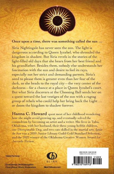 Once upon a time, there was something called the sun ... In a kingdom ruled by an evil witch, the sun is just part of a legend about light-filled days of old. Luckily for everybody in the kingdom, Siria Nightingale is headed to the heart of the darkness to try and restore the light--or she will lose everything trying. Sixteen year-old Siria Nightingale has never seen the sun. The light is dangerous, according to Queen Iyzabel, an evil witch who has shrouded the kingdom in shadow. Siria has always hated the darkness and revels in the stories of the light-filled old days that she hears from her best friend and his grandfather. Besides them, nobody else understands her fascination with the sun, especially not her strict and demanding parents. Siria's need to please them is greater even than her fear of the dark. So she heads to the royal city--the very center of the darkness--for a chance at a place in Queen Iyzabel's court. But what Siria discovers at the Choosing Ball sends her on a quest toward the last vestiges of the sun with a ragtag group of rebels who could help her bring back the Light ... or doom the kingdom to shadow forever. Ignite the Sun is: * A YA fantasy adventure that is exciting and unique, right down to its metallic book cover * An allegorical exploration of the struggle with anxiety and depression * Perfect for readers 13 and up