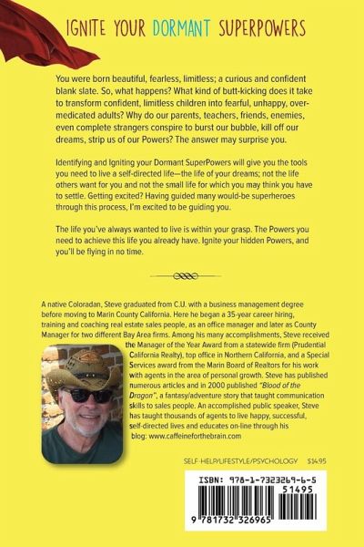You were born beautiful, fearless, limitless; a curious and confident blank slate. So, what happens? What kind of butt-kicking does it take to transform confident, limitless children into fearful, unhappy, over-medicated adults? Why do our parents, teachers, friends, enemies, even complete strangers conspire to burst our bubble, kill off our dreams, strip us of our Powers? The answer may surprise you. Identifying and Igniting your Dormant SuperPowers will give you the tools you need to live a self-directed life-the life of your dreams; not the life others want for you and not the small life for which you may think you have to settle. Getting excited? Having guided many would-be superheroes through this process, I'm excited to be guiding you. The life you've always wanted to live is within your grasp. The Powers you need to achieve this life you already have. Ignite your hidden Powers, and you'll be flying in no time.