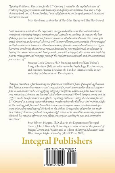 This book was conceived in a vision that ensued quite vividly during the Integral Education Seminar in 2007. Igniting Brilliance: Integral Education for the 21st Century is an anthology comprising chapters by educators, ranging from elementary teachers to university professors, who exemplify the integral approach. The emerging field of integral education is a holistic, multidimensional approach with a basis in Ken Wilber's all-quadrant, all-level framework. This book offers a snapshot of the field through a series of light, nonacademic memoirs. It is designed to inspire teachers to personalize the lessons and methods for adopting an integral approach.