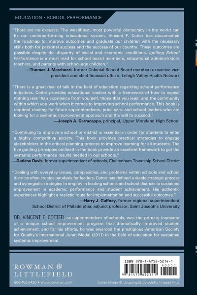 Dr. Vincent Cotter, as superintendent of schools, was the primary innovator of a unique school improvement program which dramatically improved student achievement and for his efforts was awarded the prestigious American Society for Quality's international Juran Medal (2011) in the field of education for sustained systemic improvement. Dr. Cotter has provided consultative services to both school districts and colleges and co-founded the Exemplary Schools Organization.
