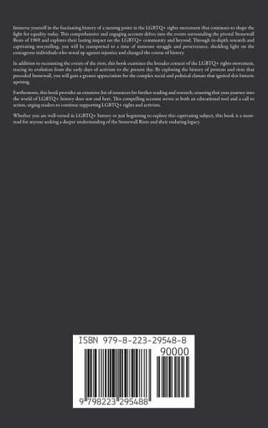 Immerse yourself in the fascinating history of a turning point in the LGBTQ+ rights movement that continues to shape the fight for equality today. This comprehensive and engaging account delves into the events surrounding the pivotal Stonewall Riots of 1969 and explores their lasting impact on the LGBTQ+ community and beyond. Through in-depth research and captivating storytelling, you will be transported to a time of immense struggle and perseverance, shedding light on the courageous individuals who stood up against injustice and changed the course of history. In addition to recounting the events of the riots, this book examines the broader context of the LGBTQ+ rights movement, tracing its evolution from the early days of activism to the present day. By exploring the history of protests and riots that preceded Stonewall, you will gain a greater appreciation for the complex social and political climate that ignited this historic uprising. Furthermore, this book provides an extensive list of resources for further reading and research, ensuring that your journey into the world of LGBTQ+ history does not end here. This compelling account serves as both an educational tool and a call to action, urging readers to continue supporting LGBTQ+ rights and activism. Whether you are well-versed in LGBTQ+ history or just beginning to explore this captivating subject, this book is a must-read for anyone seeking a deeper understanding of the Stonewall Riots and their enduring legacy.