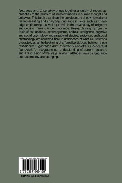 Ignorance and Uncertainty overviews a variety of approaches to the problem of indeterminacies in human thought and behavior. This book examines, in depth, trends in the psychology of judgment and decision-making under uncertainty or ignorance. Research from the fields of cognitive psychology, social psychology, organizational studies, sociology, and social anthroplogy are reviewed here in anticipation of what Dr. Smithson characterizes as the beginning of a "creative dialogue between these researchers". Ignorance and Uncertainty offers the conceptual framework for understanding the paradigms associated with current research. It discusses the ways in which attitudes toward ignorance and uncertainty are changing, and addresses issues previously ignored.