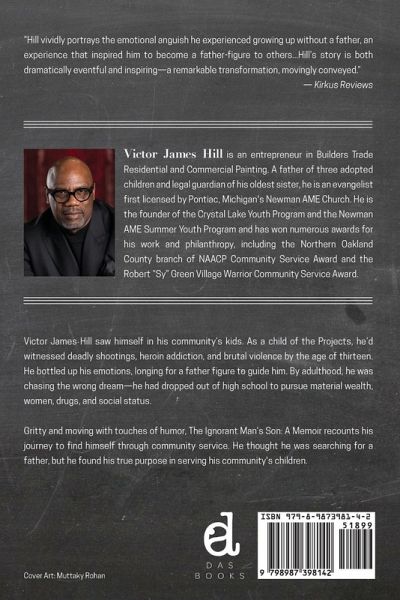Victor James Hill saw himself in his community's kids. As a child of the Projects, he'd witnessed deadly shootings, heroin addiction, and brutal violence by the age of thirteen. He bottled up his emotions, longing for a father figure to guide him. By adulthood, he was chasing the wrong dream-he had dropped out of high school to pursue material wealth, women, drugs, and social status. A traffic accident changed everything. After walking away unharmed from his violently flipped vehicle, he knew there was a reason he'd been saved. He'd noticed how many community kids ran the streets, and it gave him an idea. He would start a youth basketball league in the heart of the Projects. The project would surpass Victor's wildest dreams. From "The Lakeside Four," a 3-on-3 team that racked up multiple national championships, to a summer youth program that brought hundreds of kids to the AME church, Victor's basketball league brought hope to a new generation. It changed Victor, too. Gritty and moving with touches of humor, The Ignorant Man's Son: A Memoir recounts his journey to find himself through community service. He thought he was searching for a father, but he found his true purpose in serving his community's children.