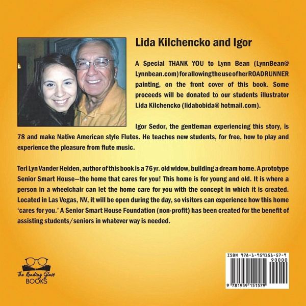Lida Kilchencko and Igor A special THANK YOU to Lynn Bean (LynnBean@Lynnbean.com) for allowing the use of her ROADRUNNER painting, on the front cover of this book. Some proceeds will be donated to our students illustrator Lida Kilchencko (lidabobida@hotmail.com). Igor Sedor, the gentleman experiencing this story, is 78 and makes Native American style Flutes. He teaches new students, for free, how to play and experience the pleasure from flute music.Teri Lyn Vander Heiden, author of this book is 76 yr. Old widow, building a dream home. A prototype Senior Smart House-the home that cares for you! This home is for young and old. It is where a person in a wheelchair can let the home care for you with the concept in which it is created. Located in Las Vegas, NV, it will be open during the day, so visitors can experience how this home 'cares for you.' A Senior Smart House Foundation (non-profit) has been created for the benefit of assisted students/seniors in whatever way is needed.