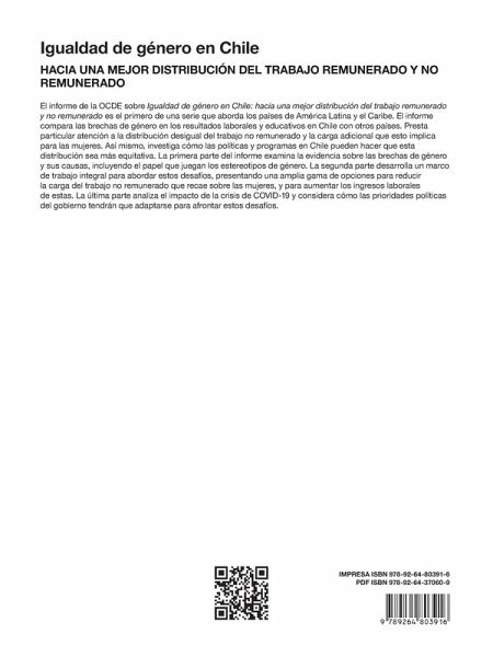 El informe de la OCDE sobre Igualdad de género en Chile: hacia una mejor distribución del trabajo remunerado y no remunerado es el primero de una serie que aborda los países de América Latina y el Caribe. El informe compara las brechas de género en los resultados laborales y educativos en Chile con otros países.