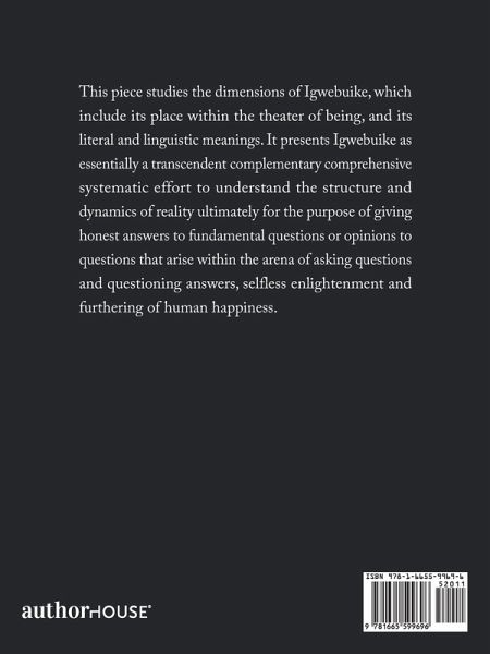 This piece studies the dimensions of Igwebuike, which include its place within the theater of being, and its literal and linguistic meanings. It presents Igwebuike as essentially a transcendent complementary comprehensive systematic effort to understand the structure and dynamics of reality ultimately for the purpose of giving honest answers to fundamental questions or opinions to questions that arise within the arena of asking questions and questioning answers, selfless enlightenment and furthering of human happiness.
