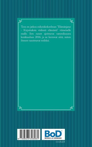 Teos on jatkoa esikoiskokoelman "Elämänjano - Kirjoituksia viidestä elämästä" viimeiselle osalle. Sen runot ajoittuvat tammikuusta kesäkuuhun 2016, ja ne kertovat siitä, miten ihmeet tasoittuvat todeksi.