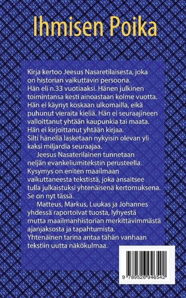 Kirja kertoo Jeesus Nasaretilaisesta, joka on historian vaikuttavin persoona.Hän eli n.33 vuotiaaksi. Hänen julkinen toimintansa kesti ainoastaan kolme vuotta. Hän ei käynyt koskaan ulkomailla, eikä puhunut vieraita kieliä. Hän ei seuraajineen valloittanut yhtään kaupunkia tai maata. Hän ei kirjoittanut yhtään kirjaa. Silti hänellä lasketaan nykyisin olevan yli kaksi miljardia seuraajaa. Jeesus Nasaretilainen tunnetaan neljän evankeliumitekstin perusteella. Ehjä kokonaiskuva voidaan saada vain yhdistämällä osat. Nyt on ensimmäistä kertaa Matteuksen, Markuksen, Luukkaan ja Johanneksen evankeliumit yhdistetty yhtenäiseksi kertomukseksi, jossa kuitenkin kaikki tarinat ovat mukana. He yhdessä raportoivat tuosta lyhyestä mutta maailmanhistorian merkittävimmästä ajanjaksosta ja tapahtumista. Kysymys on maailmaan eniten vaikuttaneesta tekstistä. Tämä teksti ansaitsee tulla n. 2000 vuoden jälkeen julkaistuksi yhtenäisenä kertomuksena. Näin on syntynyt uusi näkökulma tuohon vanhaan tekstiin. Uskonnosta tekstissä on kysymys silloin kun lukija pitää sitä totuutena, länsimaista kulttuuriperintöä se on joka tapauksessa.