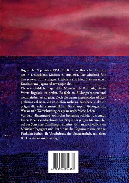 Bagdad im September 1961. Ali Katib verlässt seine Heimat, um in Deutschland Medizin zu studieren. Der Abschied fällt ihm schwer. Erinnerungen, Erlebnisse und Eindrücke aus seiner Kindheit und Jugend überwältigen ihn. Die wirtschaftliche Lage vieler Menschen in Kathimia, einem Vorort Bagdads, ist prekär. Es fehlt an Bildungschancen und medizinischer Versorgung. Doch die daraus entstehenden Alltagsprobleme scheinen die Menschen nicht zu betrüben. Vielmehr prägen die zwischenmenschlichen Beziehungen, Geborgenheit, Wärme und Wertschätzung das gemeinschaftliche Leben.Vor dem Hintergrund politischer Ereignisse schildert der Autor Fakhri Khalik eindrucksvoll den Weg eines jungen Mannes, der auf der Spur eines Familiengeheimnisses den unterschiedlichsten Menschen begegnet und lernt, dass die Gegenwart eine einzige Funktion besitzt: die Verarbeitung der Vergangenheit, um einen Blick in die Zukunft zu wagen.