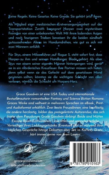 Keine Regeln. Keine Gesetze. Keine Gnade. Sie gehört jetzt ihnen. Als Mitglied einer medizinischen Erstversorgungseinheit auf der Transportstation Zenith begegnet Harper zwei mysteriösen Fremden von einer unbekannten Welt. Mit ihren lodernden Augen und noch feurigeren Trieben beweisen ihr die beiden sündhaft gutaussehenden Aliens im Handumdrehen, wie gut es sich mit zwei Männern anfühlt. Für Styx, einem Milizenführer auf Rogue 5, steht sofort fest, dass Harper zu ihm und seinem Handlanger Blade gehört. Als aber Styx von einem seiner eigenen Männer hintergangen wird, gerät sie in ein mörderisches Kreuzfeuer. Ihre Partner müssen sich hüten, denn selbst wenn sie das Gefecht auf dem gesetzlosen Mond gewinnen sollten, könnten sie die wichtigste Schlacht von allen verlieren, nämlich die Schlacht um Harpers Herz.