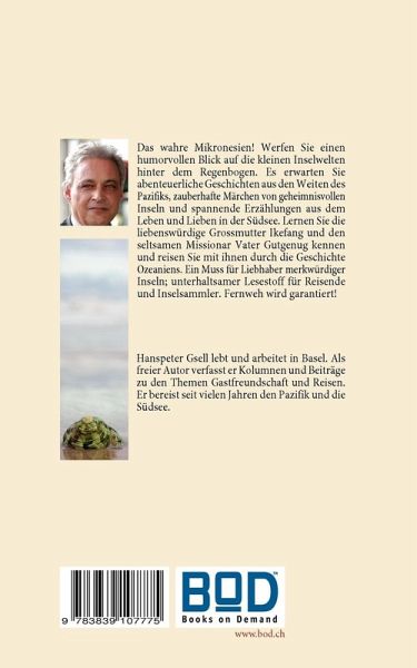 Das wahre Mikronesien! Werfen Sie einen humorvollen Blick auf die kleinen Inselwelten hinter dem Regenbogen. Es erwarten Sie abenteuerliche Geschichten aus den Weiten des Pazifiks, zauberhafte Märchen von geheimnisvollen Inseln und spannende Erzählungen aus dem Leben und Lieben in der Südsee. Lernen Sie die liebenswürdige Grossmutter Ikefang und den seltsamen Missionar Vater Gutgenug kennen und reisen Sie mit ihnen durch die Geschichte Ozeaniens. Ein Muss für Liebhaber merkwürdiger Inseln; unterhaltsamer Lesestoff für Reisende und Inselsammler. Fernweh wird garantiert!