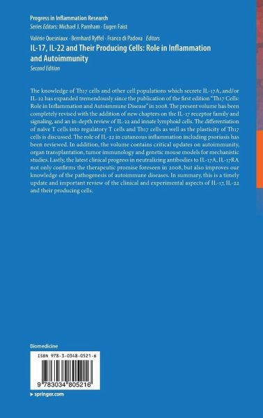 The knowledge of Th17 cells and other cell populations which secrete IL-17A, and/or IL-22 has expanded tremendously since the publication of the first edition "Th17 Cells: Role in Inflammation and Autoimmune Disease" in 2008. The present volume has been completely revised with the addition of new chapters on the IL-17 receptor family and signaling, and an in-depth review of IL-22 and innate lymphoid cells. The differentiation of naïve T cells into regulatory T cells and Th17 cells as well as the plasticity of Th17 cells is discussed. The role of IL-22 in cutaneous inflammation including psoriasis has been reviewed. In addition, the volume contains critical updates on autoimmunity, organ transplantation, tumor immunology and genetic mouse models for mechanistic studies. Lastly, the latest clinical progress in neutralizing antibodies to IL-17A, IL-17RA not only confirms the therapeutic promise foreseen in 2008, but also improves our knowledge of the pathogenesis of autoimmune diseases. In summary, this is a timely update and important review of the clinical and experimental aspects of IL-17, IL-22 and their producing cells.