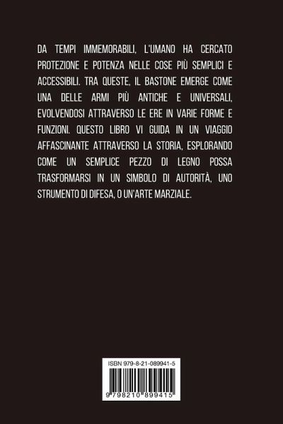 Da tempi immemorabili, l'essere umano ha cercato protezione e potenza nelle cose più semplici e accessibili. Tra queste, il bastone emerge come una delle armi più antiche e universali, evolvendosi attraverso le ere in varie forme e funzioni. Questo libro vi guida in un viaggio affascinante attraverso la storia, esplorando come un semplice pezzo di legno possa trasformarsi in un simbolo di autorità, uno strumento di difesa, o un'arte marziale.