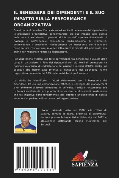 Questo articolo analizza l'intricata relazione tra il benessere dei dipendenti e le prestazioni organizzative, concentrandosi sul suo impatto sulla qualità delle cure e sui risultati operativi all'interno dell'ospedale distrettuale di Rwibaga e dell'ospedale comunitario madre-bambino di Nyambuye, sottolineando il crescente riconoscimento del benessere dei dipendenti come fattore cruciale non solo per influenzare il morale del personale, ma anche per migliorare l'efficacia organizzativa. I risultati hanno rivelato una forte correlazione tra benessere e qualità delle cure; in particolare, il 75% dei dipendenti con alti livelli di benessere ha riportato valutazioni di soddisfazione dei pazienti superiori all'80%. Inoltre, gli ospedali che hanno dato priorità al benessere dei dipendenti hanno registrato un aumento del 20% nelle metriche di performance. Lo studio ha identificato i fattori determinanti per il benessere dei dipendenti, tra cui una comunicazione efficace, il sostegno del management e un ambiente di lavoro stimolante. In definitiva, l'articolo raccomanda alle istituzioni sanitarie di dare priorità al benessere dei dipendenti, sostenendo che tali iniziative sono fondamentali per ottenere un'assistenza di qualità superiore ai pazienti e il successo dell'organizzazione.