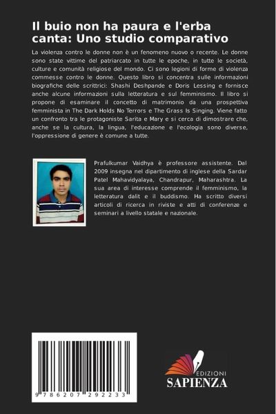 La violenza contro le donne non è un fenomeno nuovo o recente. Le donne sono state vittime del patriarcato in tutte le epoche, in tutte le società, culture e comunità religiose del mondo. Ci sono legioni di forme di violenza commesse contro le donne. Questo libro si concentra sulle informazioni biografiche delle scrittrici: Shashi Deshpande e Doris Lessing e fornisce anche alcune informazioni sulla letteratura e sul femminismo. Il libro si propone di esaminare il concetto di matrimonio da una prospettiva femminista in The Dark Holds No Terrors e The Grass Is Singing. Viene fatto un confronto tra le protagoniste Sarita e Mary e si cerca di dimostrare che, anche se la cultura, la lingua, l'educazione e l'ecologia sono diverse, l'oppressione di genere è comune a tutte.