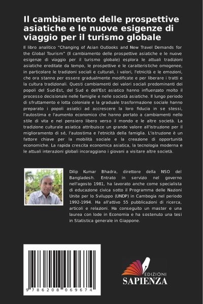 Il libro analitico ¿Changing of Asian Outlooks and New Travel Demands for the Global Tourism¿ (Il cambiamento delle prospettive asiatiche e le nuove esigenze di viaggio per il turismo globale) esplora le attuali tradizioni asiatiche ereditate da tempo, le prospettive e le caratteristiche omogenee, in particolare le tradizioni sociali e culturali, i valori, l'etnicità e le emozioni, che ora stanno per essere gradualmente modificate e per liberare i tratti e la cultura tradizionali. Questi cambiamenti dei valori sociali predominanti dei popoli del Sud-Est, del Sud e dell'Est asiatico hanno influenzato molto il processo decisionale nelle famiglie e nelle società asiatiche. Il lungo periodo di sfruttamento e lotta coloniale e la graduale trasformazione sociale hanno preparato i popoli asiatici ad accrescere la loro fiducia in se stessi, l'autostima e l'aumento economico che hanno portato a cambiamenti nello stile di vita e nel pensiero libero verso il mondo e le altre società. La tradizione culturale asiatica attribuisce un grande valore all'istruzione per il miglioramento di sé, l'autostima e l'etnicità della famiglia. L'istruzione è un fattore chiave per la mobilità sociale e la creazione di opportunità economiche. La rapida crescita economica asiatica, la tecnologia moderna e le attuali interazioni globali incoraggiano i giovani a visitare altre società.