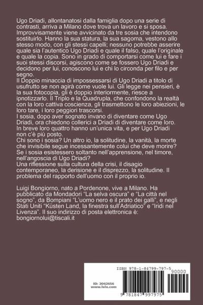 Ugo Driadi, allontanatosi dalla famiglia dopo una serie di contrasti, arriva a Milano dove trova un lavoro e si sposa. Improvvisamente viene avvicinato da tre sosia che intendono sostituirlo. Hanno la sua statura, la sua sagoma, vestono allo stesso modo, con gli stessi capelli; nessuno potrebbe asserire quale sia l'autentico Ugo Driadi e quale il falso, quale l'originale e quale la copia. Sono in grado di comportarsi come lui e fare i suoi stessi discorsi, agiscono come se fossero Ugo Driadi e decidono per lui, conoscono lui e chi lo circonda per filo e per segno. Chi sono i sosia? Un altro io, la solitudine, la vanità, la morte che invisibile segue incessantemente colui che deve morire? Se i sosia esistessero soltanto nell'apprensione, nel timore, nell'angoscia di Ugo Driadi? Una riflessione sulla cultura della crisi, il disagio contemporaneo, la derisione e il disprezzo, la solitudine. Il problema del rapporto dell'uomo con il proprio io.