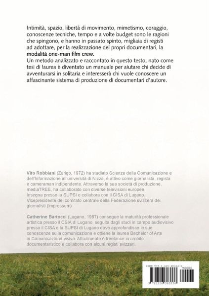 Intimità, spazio, libertà di movimento, mimetismo, coraggio, conoscenze tecniche, tempo e a volte budget sono le ragioni che spingono, e hanno in passato spinto, migliaia di registi ad adottare, per la realizzazione dei propri documentari, la modalità one-man film crew. Un metodo analizzato e raccontato in questo testo, nato come tesi di laurea è diventato un manuale per aiutare chi decide di avventurarsi in solitaria e interesserà chi vuole conoscere un affascinante sistema di produzione di documentari d'autore.