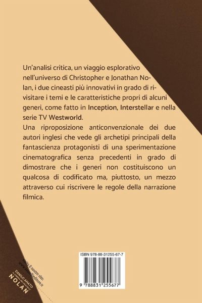 Un'analisi critica, un viaggio esplorativo nell'universo di Christopher e Jonathan Nolan, i due cineasti più innovativi in grado di rivisitare i temi e le caratteristiche propri di alcuni i generi, come fatto in Inception, Interstellar e nella serie TV Westworld. Una riproposizione anticonvenzionale dei due autori inglesi che vede gli archetipi principali della fantascienza protagonisti di una sperimentazione cinematografica senza precedenti in grado di dimostrare che i generi non costituiscono un qualcosa di codificato ma, piuttosto, un mezzo attraverso cui riscrivere le regole della narrazione filmica.