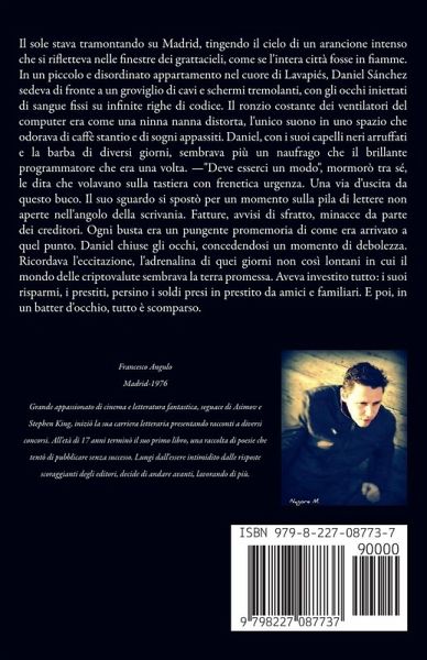 Il sole stava tramontando su Madrid, tingendo il cielo di un arancione intenso che si rifletteva nelle finestre dei grattacieli, come se l'intera città fosse in fiamme. In un piccolo e disordinato appartamento nel cuore di Lavapiés, Daniel Sánchez sedeva di fronte a un groviglio di cavi e schermi tremolanti, con gli occhi iniettati di sangue fissi su infinite righe di codice. Il ronzio costante dei ventilatori del computer era come una ninna nanna distorta, l'unico suono in uno spazio che odorava di caffè stantio e di sogni appassiti. Daniel, con i suoi capelli neri arruffati e la barba di diversi giorni, sembrava più un naufrago che il brillante programmatore che era una volta. -"Deve esserci un modo", mormorò tra sé, le dita che volavano sulla tastiera con frenetica urgenza. Una via d'uscita da questo buco. Il suo sguardo si spostò per un momento sulla pila di lettere non aperte nell'angolo della scrivania. Fatture, avvisi di sfratto, minacce da parte dei creditori. Ogni busta era un pungente promemoria di come era arrivato a quel punto. Daniel chiuse gli occhi, concedendosi un momento di debolezza. Ricordava l'eccitazione, l'adrenalina di quei giorni non così lontani in cui il mondo delle criptovalute sembrava la terra promessa. Aveva investito tutto: i suoi risparmi, i prestiti, persino i soldi presi in prestito da amici e familiari. E poi, in un batter d'occhio, tutto è scomparso.