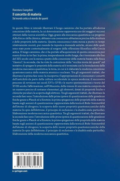 In questo libro si intende illustrare il lungo cammino che ha portato all'odierna concezione della materia, la cui determinazione rappresenta uno dei maggiori successi ottenuti dalla ricerca scientifica. Oggi, grazie alla meccanica quantistica e ai progressi della fisica e della chimica, abbiamo una conoscenza abbastanza precisa della struttura e delle proprietà della materia. Questa conoscenza è stata messa a punto in tempi relativamente recenti, pur essendo la risposta a domande antiche, alcune delle quali sono state poste contestualmente al sorgere della riflessione filosofica nella Grecia antica. Il lungo cammino, che ci ha portato all'acquisizione di questa conoscenza può essere diviso in tre fasi: la prima, temporalmente molto lunga, che è terminata alla fine del XIX secolo con la messa a punto della concezione della materia basata sulla fisica "classica"; la seconda, che ha visto la costruzione della "vecchia teoria dei quanti" nel tentativo di spiegare le proprietà della materia ed è terminata con la formulazione della moderna meccanica quantistica; la terza, in cui si è elaborata la moderna concezione quantomeccanica della materia atomica e nucleare. Tra gli argomenti trattati, che illustrano la prima fase sono: la riscoperta e l'appropriazione di conoscenze e concetti dell'antichità da parte della cultura occidentale in epoca moderna; il successivo processo di revisione nei secoli XVI e XVII e le nuove sperimentazioni e teorie del XVIII secolo; l'affermazione, nell'Ottocento, della visione di una materia composta da un numero preciso di sostanze elementari, gli elementi, dotati di proprietà fisiche e chimiche peculiari; la scoperta degli elettroni. Tra gli argomenti trattati, che illustrano la seconda fase sono: l'introduzione delle prime ipotesi di quantizzazione delle grandezze fisiche grazie a Planck ed a Einstein; la prima spiegazione delle proprietà della materia basata sugli assiomi di quantizzazione rappresentata dalla teoria di Bohr-Sommerfeld dell'atomo di idrogeno; la scoperta delle nuove proprietà quantomeccaniche della materia (lo spin dell'elettrone, il principio di esclusione e la dualità onda-particella); l'elaborazione moderna meccanica quantistica. Tra gli argomenti trattati, che illustrano la seconda fase sono: l'introduzione delle prime ipotesi di quantizzazione delle grandezze fisiche grazie a Planck ed a Einstein; la prima spiegazione delle proprietà della materia basata sugli assiomi di quantizzazione rappresentata dalla teoria di Bohr-Sommerfeld dell'atomo di idrogeno; la scoperta delle nuove proprietà quantomeccaniche della materia (lo spin dell'elettrone, il principio di esclusione e la dualità onda-particella); l'elaborazione della moderna meccanica quantistica.