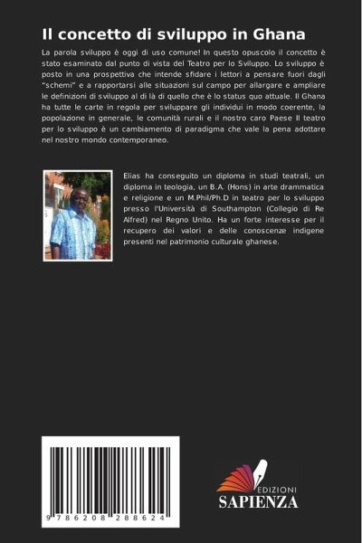 La parola sviluppo è oggi di uso comune! In questo opuscolo il concetto è stato esaminato dal punto di vista del Teatro per lo Sviluppo. Lo sviluppo è posto in una prospettiva che intende sfidare i lettori a pensare fuori dagli ¿schemi¿ e a rapportarsi alle situazioni sul campo per allargare e ampliare le definizioni di sviluppo al di là di quello che è lo status quo attuale. Il Ghana ha tutte le carte in regola per sviluppare gli individui in modo coerente, la popolazione in generale, le comunità rurali e il nostro caro Paese Il teatro per lo sviluppo è un cambiamento di paradigma che vale la pena adottare nel nostro mondo contemporaneo.