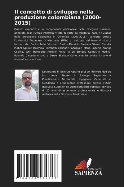 Questo rapporto è la componente particolare della categoria sviluppo, generata dalla ricerca intitolata "Stato dell'arte su territorio, pace e sviluppo dalla produzione scientifica in Colombia (2000-2015)" condotta presso l'Università Autonoma di Manizales (UAM) e realizzata dal team di ricerca formato da: Carlos Fadul Vásquez, Carlos Mauricio Santana Sáenz, Claudia Isabel Aguirre Jaramillo, Elizabeth Enríquez Rodríguez, María Eugenia Arango Ospina, John Humberto Moreno Reina, Jorge Enrique Camacho Medina, Rolando Caicedo Arroyo e Daniel Hurtado Cano, che ha svolto il ruolo di ricercatore principale.