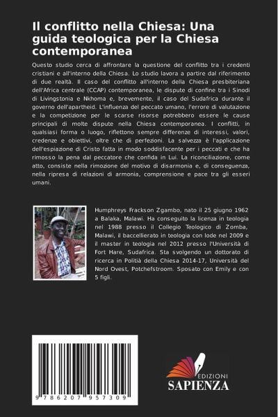 Questo studio cerca di affrontare la questione del conflitto tra i credenti cristiani e all'interno della Chiesa. Lo studio lavora a partire dal riferimento di due realtà. Il caso del conflitto all'interno della Chiesa presbiteriana dell'Africa centrale (CCAP) contemporanea, le dispute di confine tra i Sinodi di Livingstonia e Nkhoma e, brevemente, il caso del Sudafrica durante il governo dell'apartheid. L'influenza del peccato umano, l'errore di valutazione e la competizione per le scarse risorse potrebbero essere le cause principali di molte dispute nella Chiesa contemporanea. I conflitti, in qualsiasi forma o luogo, riflettono sempre differenze di interessi, valori, credenze e obiettivi, oltre che di perfezioni. La salvezza è l'applicazione dell'espiazione di Cristo fatta in modo soddisfacente per i peccati e che ha rimosso la pena dal peccatore che confida in Lui. La riconciliazione, come atto, consiste nella rimozione del motivo di disarmonia e, di conseguenza, nella ripresa di relazioni di armonia, comprensione e pace tra gli esseri umani.