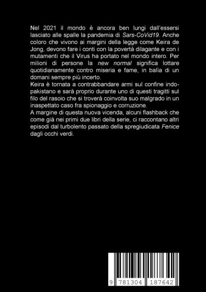 Nel 2021 il mondo è ancora ben lungi dall'essersi lasciato alle spalle la pandemia di Sars-CoVid19. Anche coloro che vivono ai margini della legge come Keira de Jong, devono fare i conti con la povertà dilagante e con i mutamenti che il Virus ha portato nel mondo intero. Per milioni di persone la new normal significa lottare quotidianamente contro miseria e fame, in balìa di un domani sempre più incerto. Keira è tornata a contrabbandare armi sul confine indo-pakistano e sarà proprio durante uno di questi tragitti sul filo del rasoio che si troverà coinvolta suo malgrado in un inaspettato caso fra spionaggio e corruzione. A margine di questa nuova vicenda, alcuni flashback che come già nei primi due libri della serie, ci raccontano altri episodi dal turbolento passato della spregiudicata Fenice dagli occhi verdi.