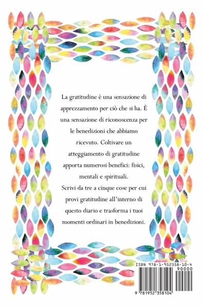 La gratitudine è una sensazione di apprezzamento per ciò che si ha. È una sensazione di riconoscenza per le benedizioni che abbiamo ricevuto. Coltivare un atteggiamento di gratitudine apporta numerosi benefici: fisici, mentali e spirituali. Provare gratitudine nel presente ci rende più felici e più rilassati, e migliora salute e benessere in generale. Ci sono delle pagine all'interno di questo diario dove è possibile semplicemente disegnare qualcosa. Se non ti va di disegnare niente, allora incolla una bella immagine sulla pagina. Le nostre menti reagiscono meglio alle immagini e questo è un ottimo modo per provare gratitudine e apprezzamento. Scrivi da tre a cinque cose per cui provi gratitudine all'interno di questo diario e trasforma i tuoi momenti ordinari in benedizioni.
