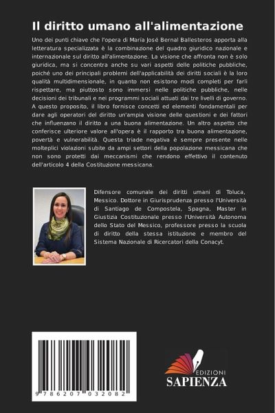 Uno dei punti chiave che l'opera di María José Bernal Ballesteros apporta alla letteratura specializzata è la combinazione del quadro giuridico nazionale e internazionale sul diritto all'alimentazione. La visione che affronta non è solo giuridica, ma si concentra anche su vari aspetti delle politiche pubbliche, poiché uno dei principali problemi dell'applicabilità dei diritti sociali è la loro qualità multidimensionale, in quanto non esistono modi completi per farli rispettare, ma piuttosto sono immersi nelle politiche pubbliche, nelle decisioni dei tribunali e nei programmi sociali attuati dai tre livelli di governo. A questo proposito, il libro fornisce concetti ed elementi fondamentali per dare agli operatori del diritto un'ampia visione delle questioni e dei fattori che influenzano il diritto a una buona alimentazione. Un altro aspetto che conferisce ulteriore valore all'opera è il rapporto tra buona alimentazione, povertà e vulnerabilità. Questa triade negativa è sempre presente nelle molteplici violazioni subite da ampi settori della popolazione messicana che non sono protetti dai meccanismi che rendono effettivo il contenuto dell'articolo 4 della Costituzione messicana.