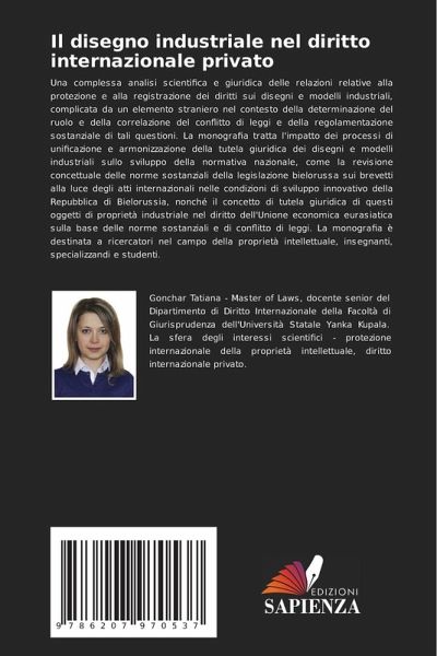 Una complessa analisi scientifica e giuridica delle relazioni relative alla protezione e alla registrazione dei diritti sui disegni e modelli industriali, complicata da un elemento straniero nel contesto della determinazione del ruolo e della correlazione del conflitto di leggi e della regolamentazione sostanziale di tali questioni. La monografia tratta l'impatto dei processi di unificazione e armonizzazione della tutela giuridica dei disegni e modelli industriali sullo sviluppo della normativa nazionale, come la revisione concettuale delle norme sostanziali della legislazione bielorussa sui brevetti alla luce degli atti internazionali nelle condizioni di sviluppo innovativo della Repubblica di Bielorussia, nonché il concetto di tutela giuridica di questi oggetti di proprietà industriale nel diritto dell'Unione economica eurasiatica sulla base delle norme sostanziali e di conflitto di leggi. La monografia è destinata a ricercatori nel campo della proprietà intellettuale, insegnanti, specializzandi e studenti.