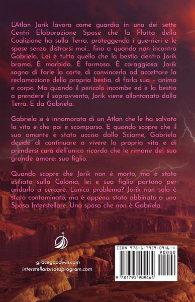 Elaborazione Spose che la Flotta della Coalizione ha sulla Terra, proteggendo i guerrieri e le spose senza distrarsi mai... fino a quando non incontra Gabriela. Lei è tutto quello che la bestia dentro Jorik brama. È morbida. È formosa. È coraggiosa. Jorik sogna di farle la corte, di convincerla ad accettare la reclamazione della propria bestia, di farla sua - anima e corpo. Ma quando il pericolo incombe ed è la bestia a prendere il sopravvento, Jorik viene allontanato dalla Terra. E da Gabriela. Gabriela si è innamorata di un Atlan che le ha salvato la vita e che poi è scomparso. E quando scopre che il suo amante è stato ucciso dallo Sciame, Gabriela decide di continuare a vivere la propria vita e di prendersi cura dell'unico ricordo che le rimane del suo grande amore: suo figlio. Quando scopre che Jorik non è morto, ma è stato esiliato sulla Colonia, lei e suo figlio partono per andarlo a cercare. L'unico problema? Jorik non solo è stato contaminato, ma è appena stato abbinato a una Sposa Interstellare. Una sposa che non è Gabriela.