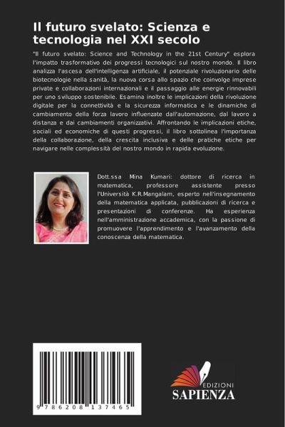 "Il futuro svelato: Science and Technology in the 21st Century" esplora l'impatto trasformativo dei progressi tecnologici sul nostro mondo. Il libro analizza l'ascesa dell'intelligenza artificiale, il potenziale rivoluzionario delle biotecnologie nella sanità, la nuova corsa allo spazio che coinvolge imprese private e collaborazioni internazionali e il passaggio alle energie rinnovabili per uno sviluppo sostenibile. Esamina inoltre le implicazioni della rivoluzione digitale per la connettività e la sicurezza informatica e le dinamiche di cambiamento della forza lavoro influenzate dall'automazione, dal lavoro a distanza e dai cambiamenti organizzativi. Affrontando le implicazioni etiche, sociali ed economiche di questi progressi, il libro sottolinea l'importanza della collaborazione, della crescita inclusiva e delle pratiche etiche per navigare nelle complessità del nostro mondo in rapida evoluzione.