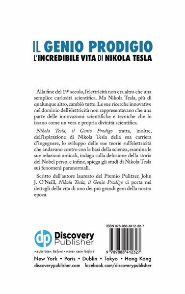 Alla fine del 19esimo secolo, l'elettricità non era altro che una semplice curiosità scientifica. Ma Nikola Tesla, più di qualunque altro, cambiò tutto. Le sue ricerche innovative nel dominio dell'elettricità non rappresentavano che una parte delle innovazioni scientifiche e tecniche che lo issano come un vera e propria divinità scientifica. Nikola Tesla, il Genio Prodigo tratta, inoltre, dell'ispirazione di Nikola Tesla della sua carriera d'ingegnere, lo sviluppo delle sue teorie sull'elettricità che andavano contro con le basi della scienza, esamina le sue relazioni amicali, indaga sulla delusione della storia del Nobel perso, e infine, spiega gli studi di Nikola Tesla sui fenomeni paranormali. Scritto dall'autore laureato del Premio Pulitzer, John J. O'Neill, Nikola Tesla, il Genio Prodigo ci porta nei dettagli della vita di uno dei più grandi geni della nostra epoca.