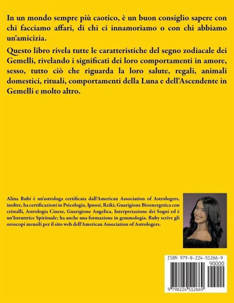 In un mondo sempre più caotico, è un buon consiglio sapere con chi facciamo affari, di chi ci innamoriamo o con chi abbiamo un'amicizia. Questo libro rivela tutte le caratteristiche del segno zodiacale dei Gemelli, rivelando i significati dei loro comportamenti in amore, sesso, tutto ciò che riguarda la loro salute, regali, animali domestici, rituali, comportamenti della Luna e dell'Ascendente in Gemelli e molto altro.