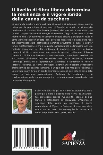La canna da zucchero viene coltivata ai tropici e ai subtropici come materia prima per la produzione di zucchero. Il Brasile ha aperto la strada alla produzione di combustibile liquido (etanolo) dal suo succo zuccherino, un modello impressionante di energia rinnovabile. Oggi si sostiene a livello mondiale che la produttività in campo di questa coltura è stagnante. Questo tema viene discusso in questo libro, portando l'idea che il plateau della resa sia determinato dalla costituzione genetica prevalente in tutte le cultivar ibride. L'affermazione è che il requisito paradigmatico dell'industria per una materia prima con un alto contenuto di zucchero, ma con un basso contenuto di fibra, determina rigorosamente questa costituzione. Il basso contenuto di fibre e l'elevato succo zuccherino sono tratti ereditati da Saccharum officinarum, un ancestrale con bassa resilienza, mentre l'omologo ancestrale S. spontaneum trasmette il contenuto di fibre e l'elevata resilienza. La canna energetica, avendo una maggiore proporzione cromosomica del secondo genitore, è un tipo con una maggiore resilienza e un elevato vigore ibrido, in grado di produrre almeno due volte la resa della canna da zucchero convenzionale. Pertanto, la produzione e la trasformazione della canna energetica possono essere considerate una tecnologia dirompente.