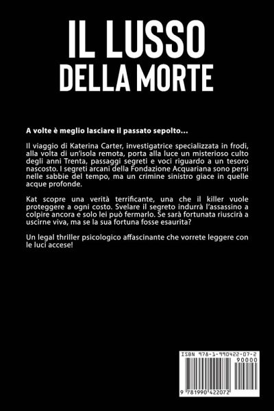 Un crimine sinistro giace nelle profondità del mare... Durante un viaggio verso un'isola remota a bordo di un lussuoso yacht, Katerina Carter, investigatrice privata, inizia a sospettare che l'affascinante e viscido proprietario della barca nasconda un segreto oscuro. Sfruttando il suo istinto per i raggiri, Kat cerca di avvisare i suoi amici che c'è qualcosa che non va nel loro ospite e che il suo piano per fare soldi puzza di bruciato. Ma perché è l'unica a pensare che non sia del tutto onesto? Durante l'esplorazione dell'isola, Kat e i suoi amici si mettono alla ricerca di indizi su un culto sinistro, la Fondazione Acquariana, e su un tesoro sepolto. Il culto ha sottratto a molte persone tutti i loro averi e ora la situazione inizia a rispecchiare in modo inquietante le loro circostanze. A meno che Kat non riesca a provare agli altri che se qualcosa sembra troppo bello per essere vero, in genere non lo è... Il Lusso della Morte è il terzo libro nella serie dei Thriller di Katerina Carter, una lettura perfetta per i fan dei romanzi alla James Patterson e alla Michael Connelly.
