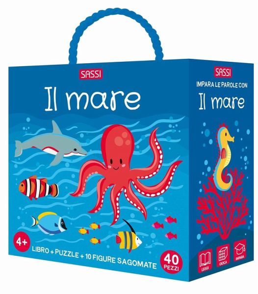 Una scatola con dettagli iridescenti che contiene un libro di 10 pagine, un puzzle di 40 pezzi e 10 figurine sagomate da assemblare e appoggiare sopra al puzzle, per imparare a riconoscere e ad associare elementi e parole. Scopri gli abitanti del mare! Sfoglia il libretto, costruisci il puzzle e impara a riconoscere moltissime creature, dalle più grandi alle più piccole, che popolano i mari e gli oceani. Età di lettura: da 4 anni. Das Urheberrecht an bibliographischen und produktbeschreibenden Daten und an den bereitgestellten Bildern liegt bei Informazioni Editoriali, I.E. S.r.l., oder beim Herausgeber oder demjenigen, der die Genehmigung erteilt hat. Alle Rechte vorbehalten.