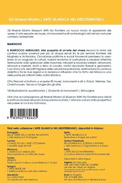 Alla scoperta di un’arte del vivere rievoca la storia dei continui scambi avvenuti per più di cinque secoli fra le più remote frontiere del Maghreb e Al-Andalus. Circostanze politiche e sociali favorevoli permisero la creazione di un crogiuolo di culture, nozioni tecniche di costruzione e soluzioni artistiche testimoniate dallo splendore delle moschee, minareti e madrasa idrissidi, almoravidi, almoadi e merinidi. Archi a ferro di cavallo, motivi decorativi floreali e geometrici, l’uso di stucchi, dei soffitti lignei e delle ceramiche policrome, testimoniano la continua dialettica fra le due regioni e la reciproca influenza che ha fatto del Marocco una delle patrie più brillanti della civiltà islamica. Otto Percorsi vi invitano a scoprire 89 musei, monumenti e siti a Rabat, Meknes, Fez, Chefchaouen, Tetuan e Tangeri (fra gli altri).